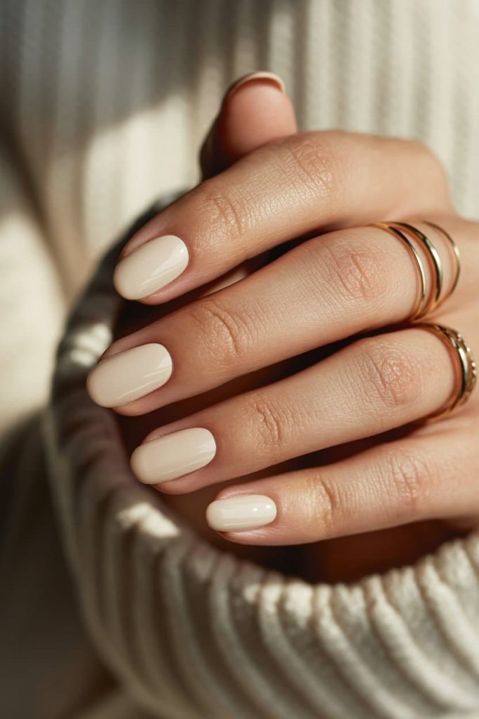 - The Accessories: Notice the gold rings? To make a neutral mani pop, you need minimalist gold jewelry. The warm gold creates a gorgeous contrast against the cool-toned polish, making the whole look feel cohesive and curated.