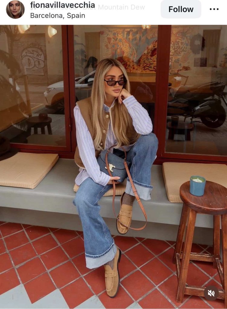 Then the cuffed jeans and loafers come in like—oh, she’s comfortable and chic.