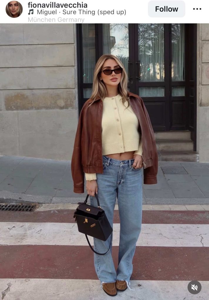 The neutral layers are doing all the work—soft jacket, clean tank, denim…simple but too good.