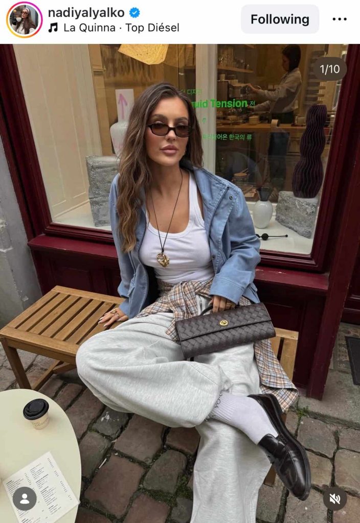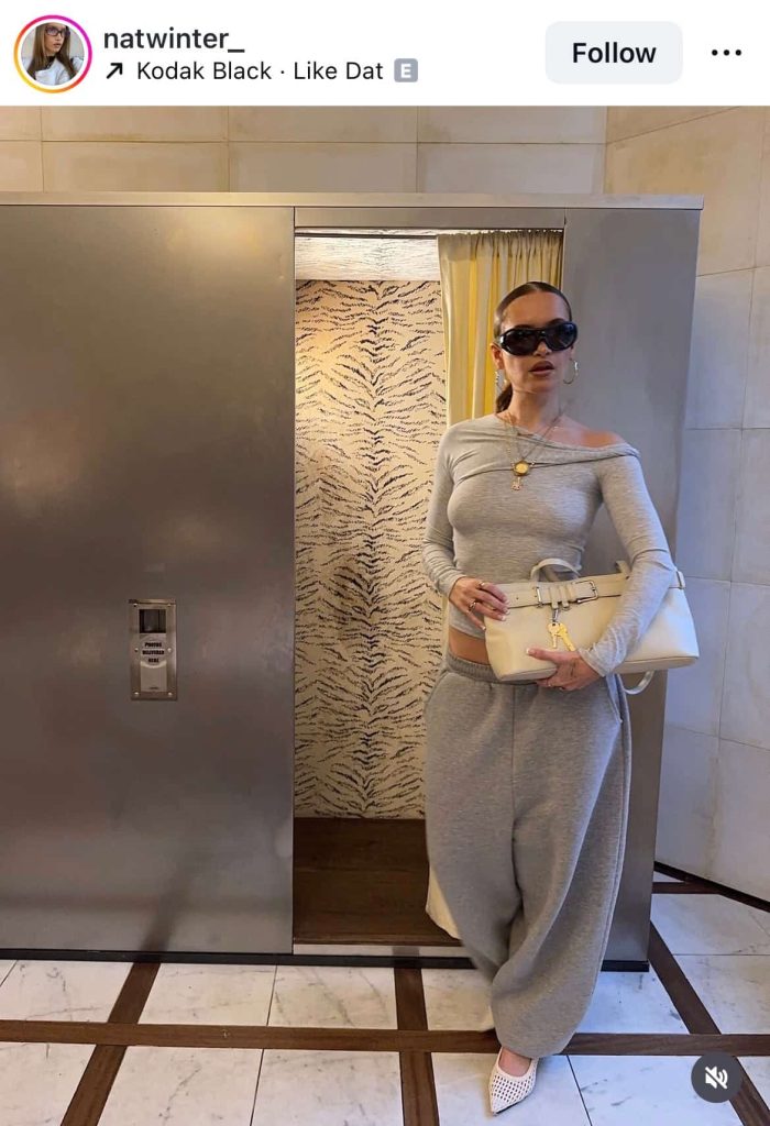 And that structured cream bag? Baby, that’s the plot twist—suddenly this isn’t loungewear, it’s a whole look.