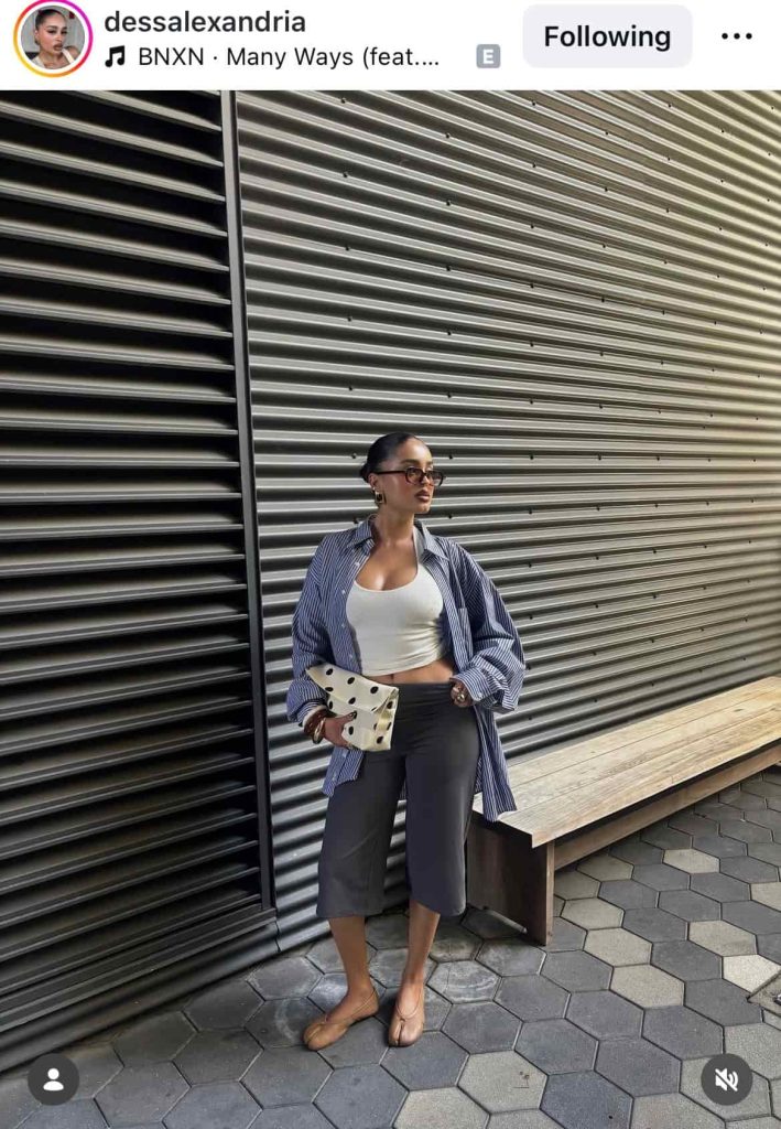 The cropped tank with the loose button-down is doing that effortless layering thing, but those tailored culottes?