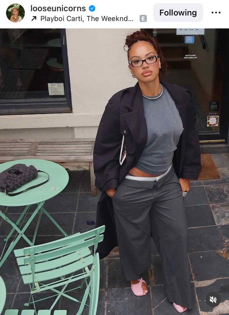 The long sleeve top is hugging in all the right places, the tailored trousers are giving “I have my life together” (even if we don’t), and that belt?
