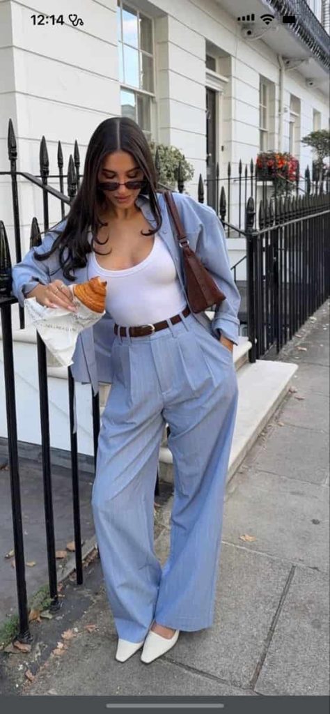 There’s something dangerously polished about a fitted baby tee with tailored trousers—it’s giving “I run the meeting and the after-party.”