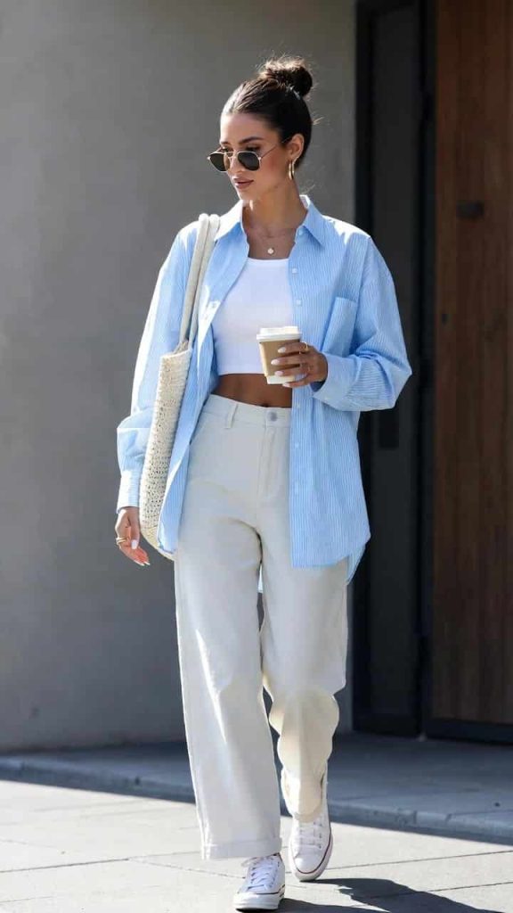 The best effortless May outfits this season feel easy but intentional, with fitted tanks, breezy button-downs, tailored trousers, and clean denim doing most of the heavy lifting.