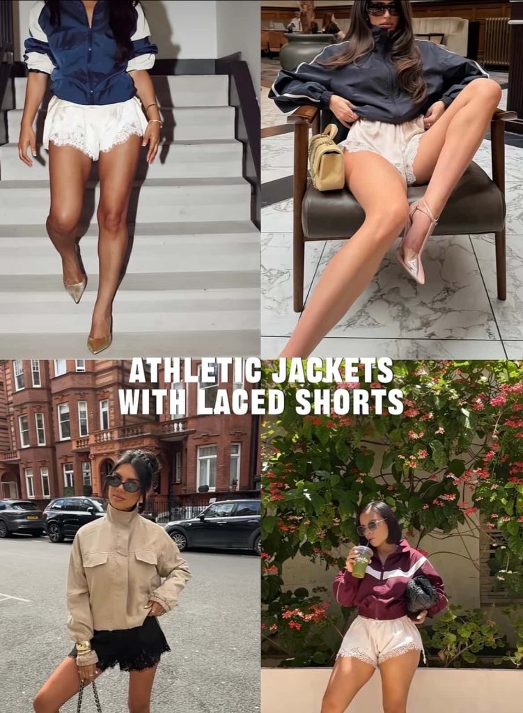 Athletic Jackets with Lace Shorts (Sporty Meets Soft Girl Energy)