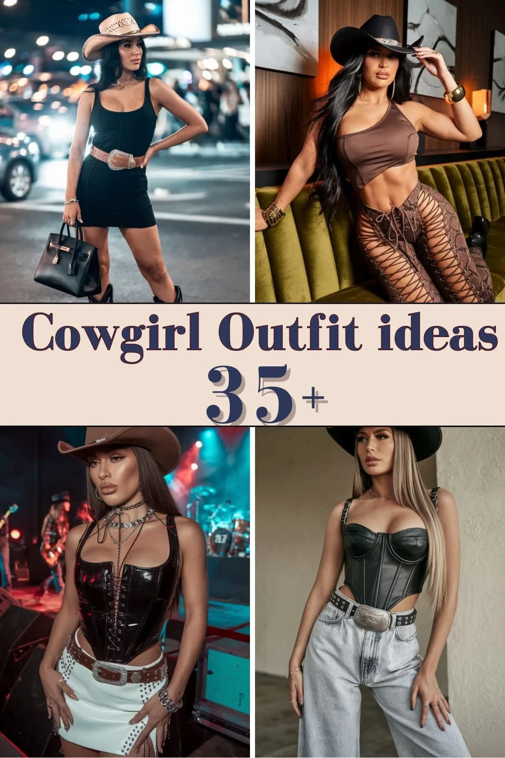 From neutral chic and denim-on-denim drama to fringe-tastic festival fits and glammed-up biker babe looks, these outfits blend traditional cowgirl style with 2025 fashion-forward details. Think lace-up vests, pearl corsets, studded boots, and cow-print bags—all curated for rodeo queens and country rebels alike.