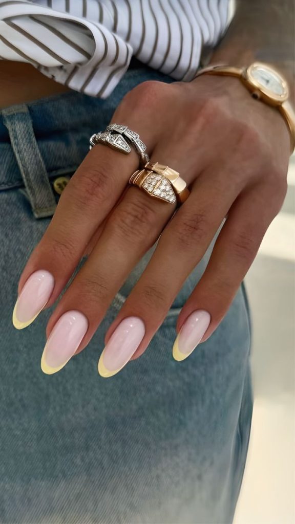 A soft blush base with delicate butter-yellow tips—subtle, polished, and quietly luxurious