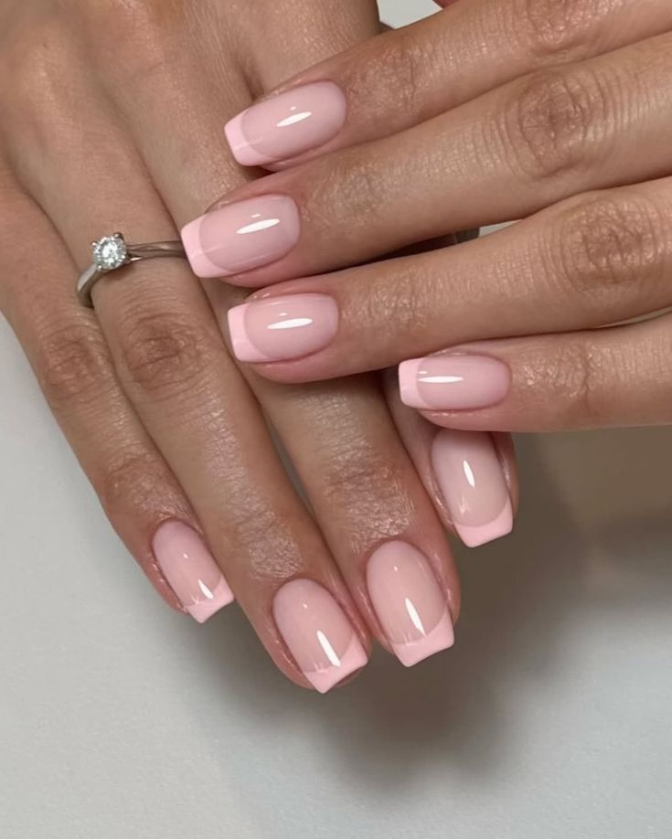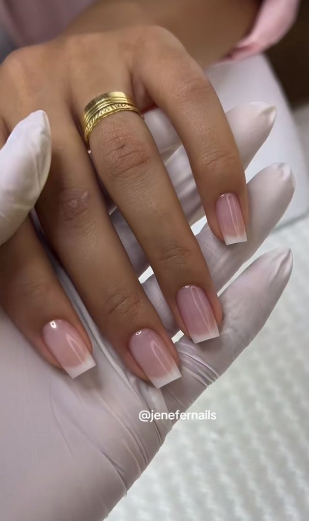 A sheer pink square French set with soft white tips—clean, classic, and quietly rich.