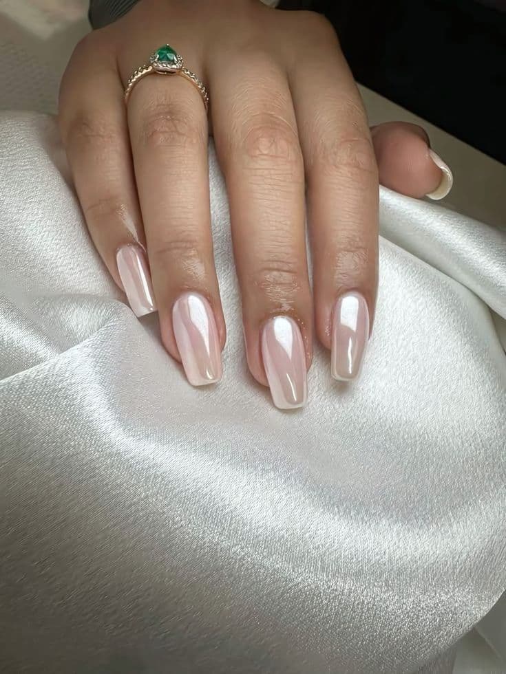 The soft pink base paired with that subtle pearly sheen catches the light just enough to feel elevated while still staying effortlessly classy.
