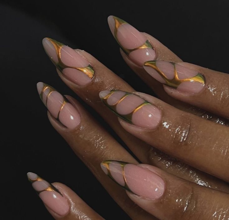 These gold-lined abstract nails are giving modern art, but make it luxury.