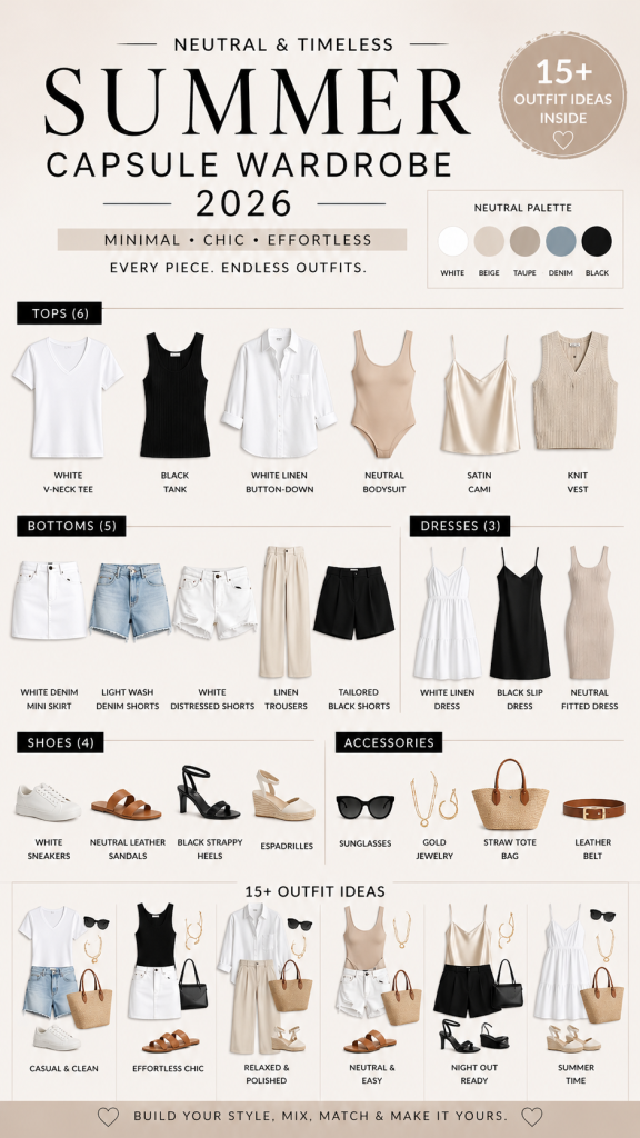 In the end, a 2026 capsule wardrobe isn’t just about dressing for one summer—it’s about defining a personal style that endures well beyond the season. And that kind of effortless consistency never goes out of fashion.