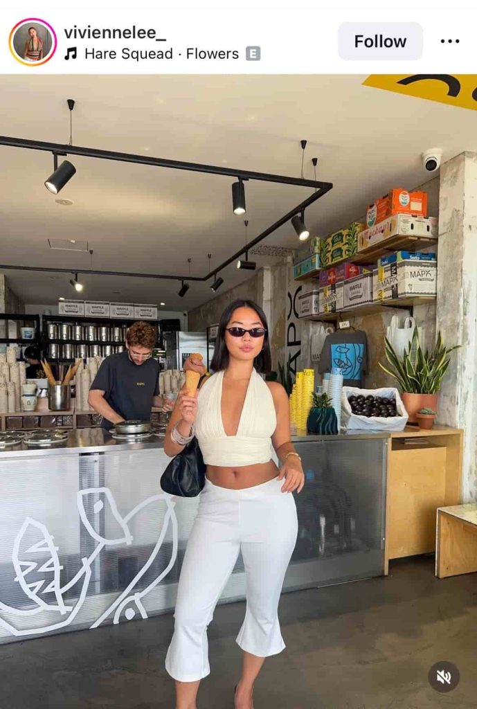 Serving effortless “rich girl runs errands” energy, this look pairs a sculpting halter top with sleek capri pants for that clean, minimal, body-contouring vibe.