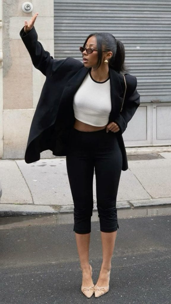 What’s changed is the styling. Instead of pairing capris with casual basics, the 2026 version leans elevated—tailoring, clean lines, and pieces that feel considered.