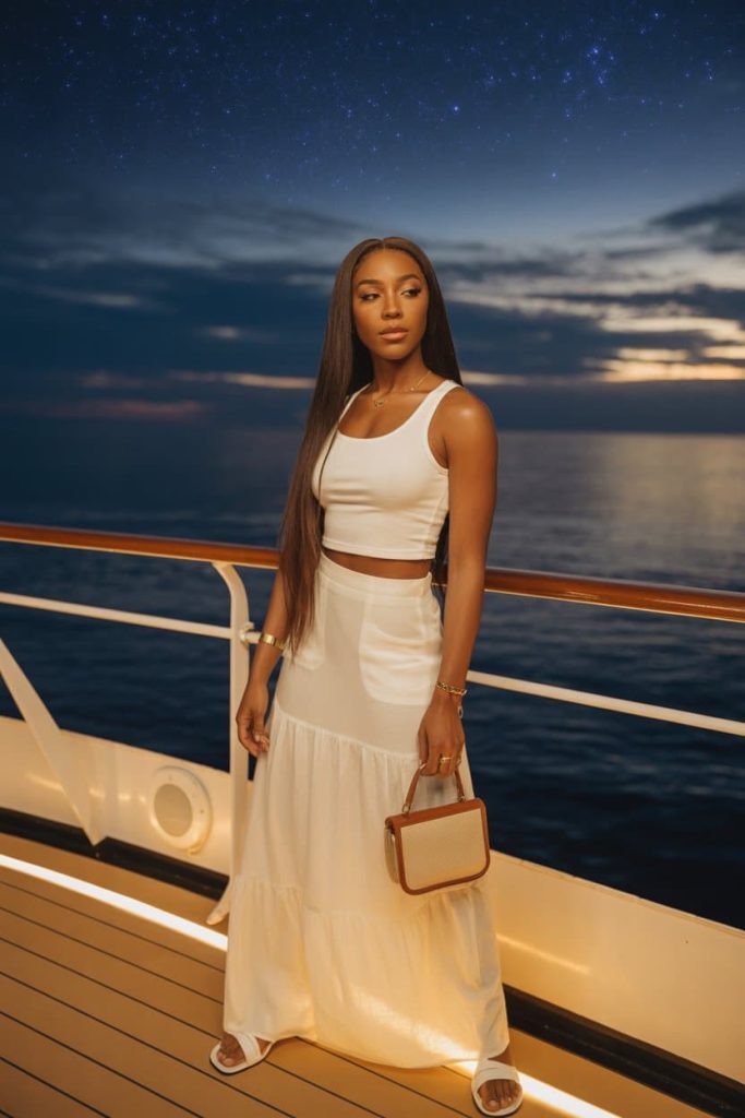 Where to wear it: cruise dinners, resort evenings, destination weddings, beachside cocktail nights, or any vacation moment where the dress code is “effortlessly unforgettable.”