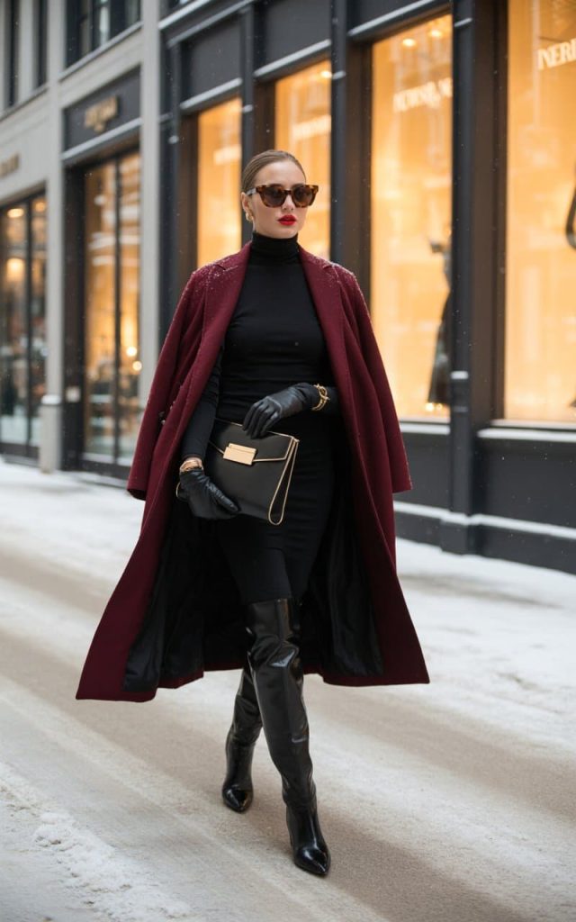 At the end of the day, elegant winter style isn’t about having a closet full of designer labels or freezing in the name of fashion—it’s about balance. The perfect winter outfit makes you feel powerful, comfortable, and polished all at once. Whether you’re strutting through the city in a burgundy power coat, catching brunch in satin and boots, or serving all-black boss energy that could silence a room, remember: elegance is a mindset first, an outfit second.